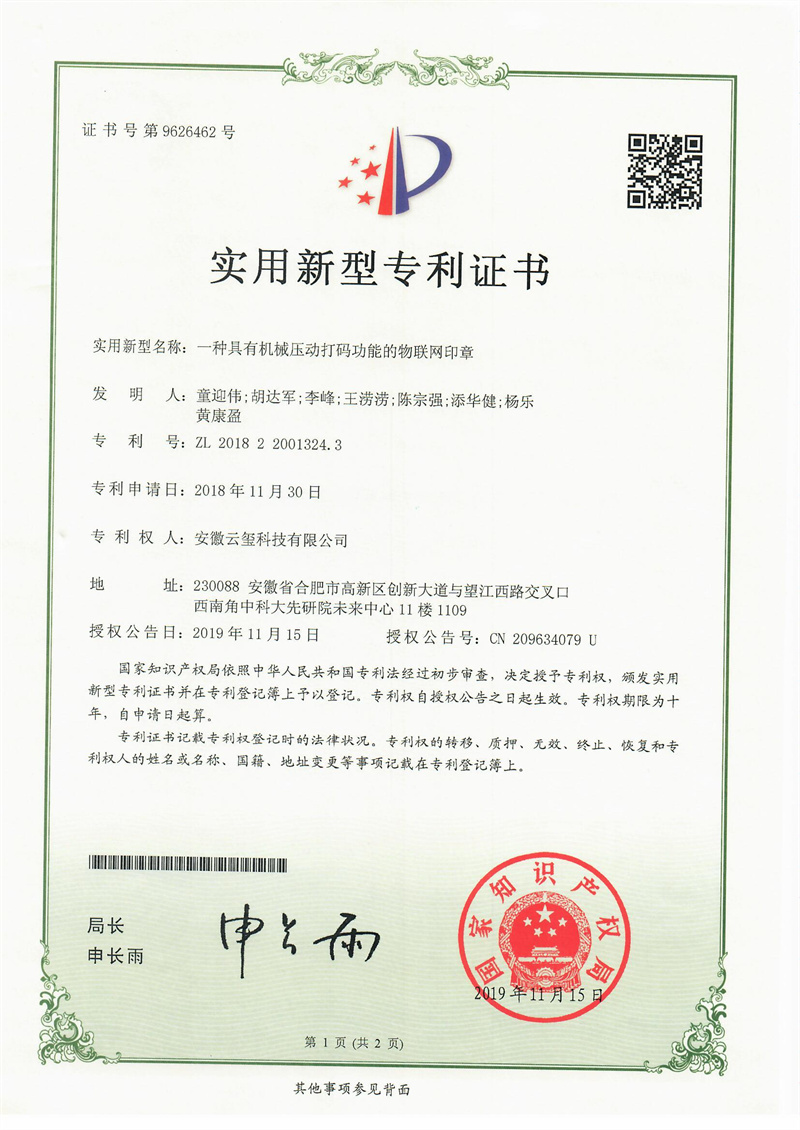 • 一種具有機(jī)械壓動(dòng)打碼功能的物聯(lián)網(wǎng)印章