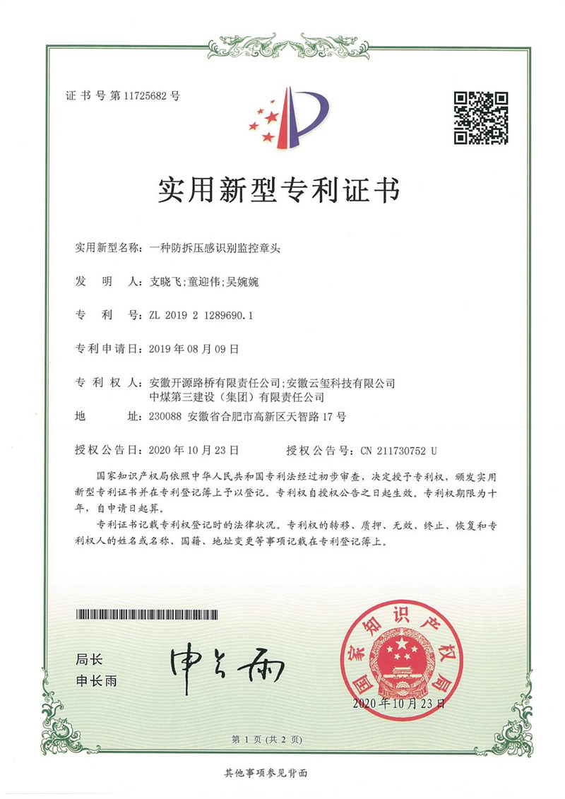 • 一種防拆壓感識(shí)別監(jiān)控章頭