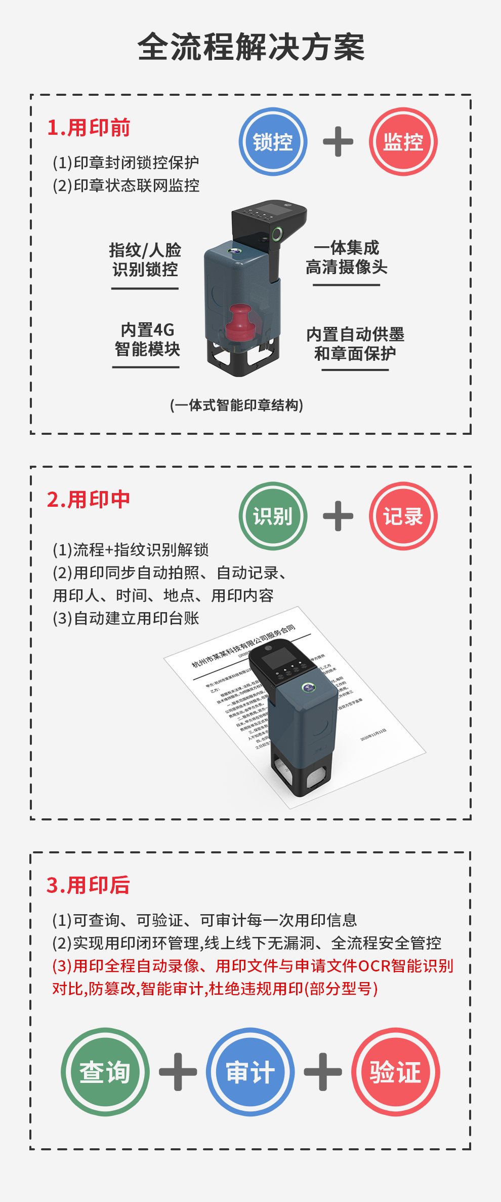 云璽量子智能印章:是一款隨時(shí)掌握印章動態(tài)、便于一鍵知曉的數(shù)字化智能印章設(shè)備。能夠?qū)崿F(xiàn)對用章行為的“用印前鎖控監(jiān)控,用印中識別記錄,用印后查詢審計(jì)驗(yàn)證”,用印全程把控避免印章風(fēng)險(xiǎn),解決企業(yè)用印效率低、成本高、風(fēng)險(xiǎn)高、管理難等問題,助企業(yè)實(shí)現(xiàn)印章管理的安全、高效與智能,實(shí)現(xiàn)對印章安全的實(shí)時(shí)監(jiān)管、全程把控,預(yù)防印章風(fēng)險(xiǎn)、提升用印效率。
