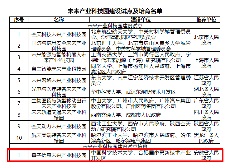 名單公布:安徽省成功獲批!量子信息未來產(chǎn)業(yè)科技園入選