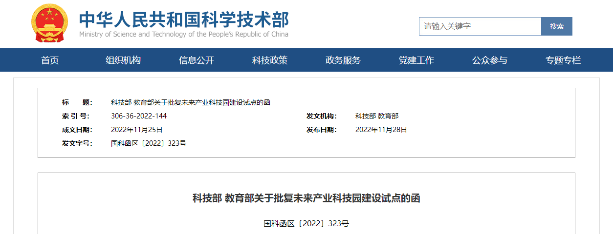 科技部 教育部關(guān)于批復(fù)未來產(chǎn)業(yè)科技園建設(shè)試點的函