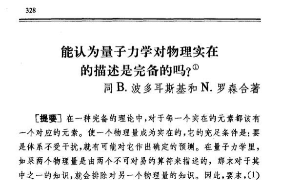 終于在1935年,愛因斯坦、波多爾斯基和羅森在《物理評論》(Physics Review)雜志上發(fā)表了他們共同署名的論文。愛因斯坦設想出著名的“EPR佯謬”(E、P、R分別代表論文的三位作者)。這算是他與玻爾一派論戰(zhàn)的第三個回合。