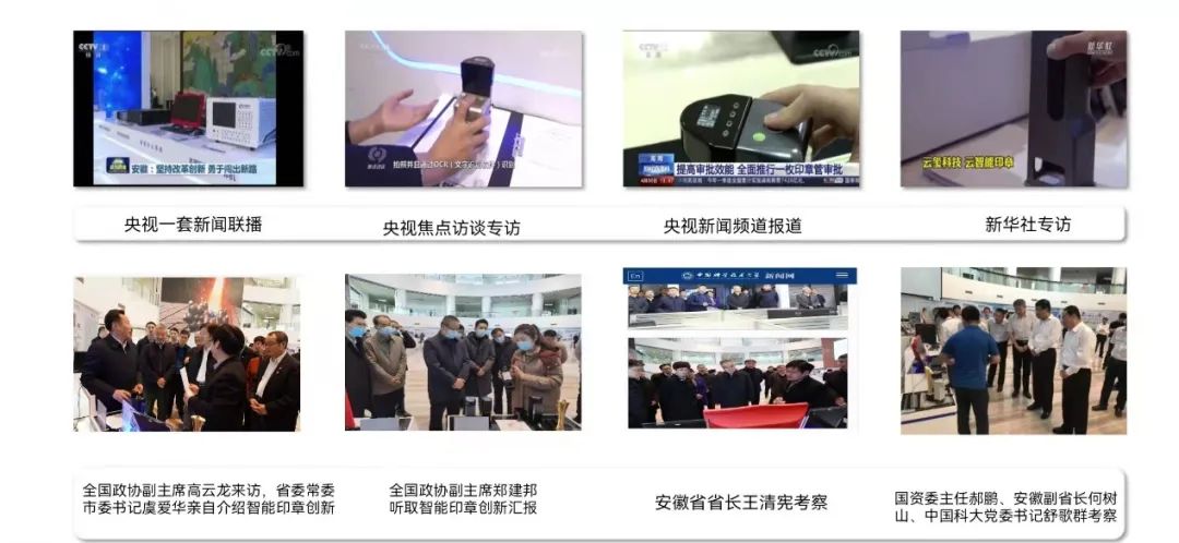 云璽在一體式智能印章領(lǐng)域具有國際領(lǐng)先地位,產(chǎn)品三次被央視新聞聯(lián)播、焦點(diǎn)訪談報(bào)道,并接受新華社專訪。已被評(píng)為安徽省三首產(chǎn)品館產(chǎn)品、合肥市三新產(chǎn)品、高新區(qū)新經(jīng)濟(jì)示范產(chǎn)品。