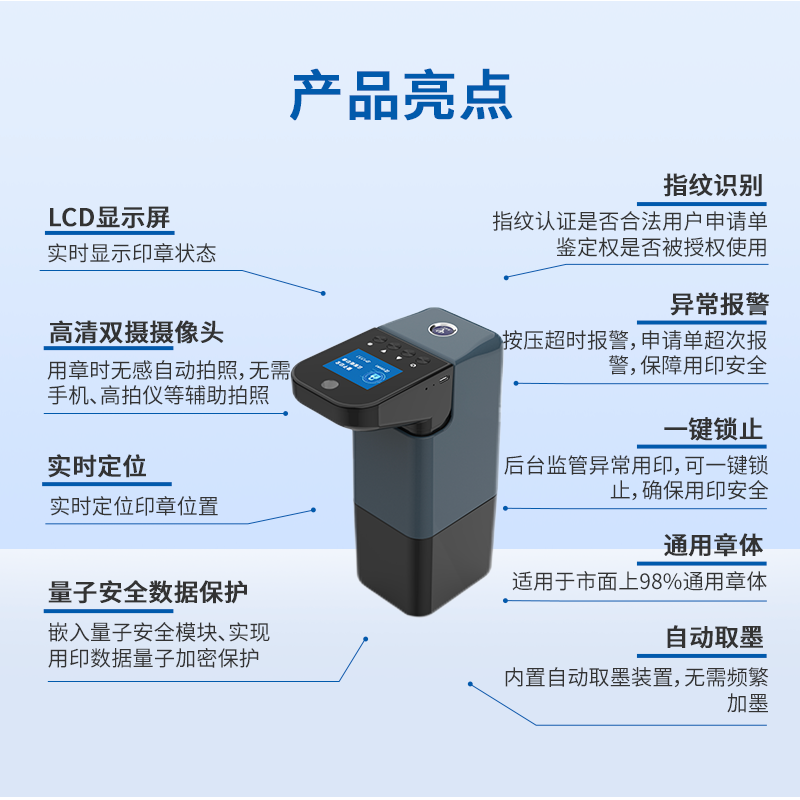云璽量子是一體式智能印章的原創(chuàng)發(fā)明人,主導(dǎo)起草行業(yè)首個智能印章安全標(biāo)準(zhǔn)、產(chǎn)品系統(tǒng)標(biāo)準(zhǔn),引領(lǐng)國內(nèi)外新一代智能印簽創(chuàng)新變革。