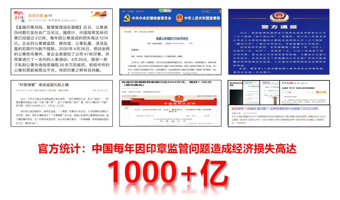 并且傳統(tǒng)印章以人管章、手工登記,人、章、流程無法關(guān)聯(lián),管控風(fēng)險(xiǎn)大。騰訊老干媽、比亞迪、渤海銀行等印章門事件屢見不鮮,傳統(tǒng)印章向智能印章變革升級(jí)是政企數(shù)字化的必然趨勢(shì)。