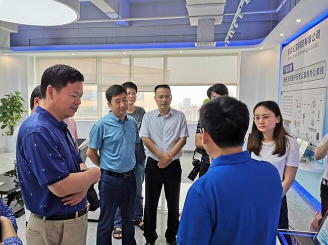 6月17日上午,阜陽師范大學物電學院老師們在校科研處張丙開處長、院黨委馬健書記、朱勇副院長的帶領下,走進中國科大先進技術研究院云璽科技公司進行參觀考察。
