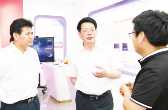 楊副省長參觀了共建創(chuàng)新基地項目云璽科技公司展廳,親切詢問了公司董事長童迎偉項目情況,關(guān)心項目的發(fā)展。得知項目尚在建設(shè)即將完工投產(chǎn),勉勵大家說:“雖然這些科技項目現(xiàn)在還不大,但有潛力,未來會有很好的發(fā)展”