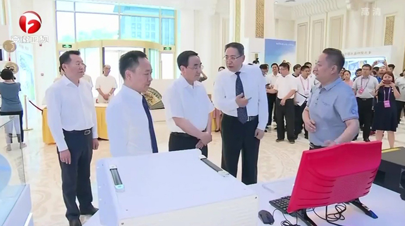 中共安徽省委書記李錦斌、省長李國英、安徽創(chuàng)新館主任陳林等向與會中 央領(lǐng)導(dǎo)介紹自主可控量子安 全云智能辦公系統(tǒng)