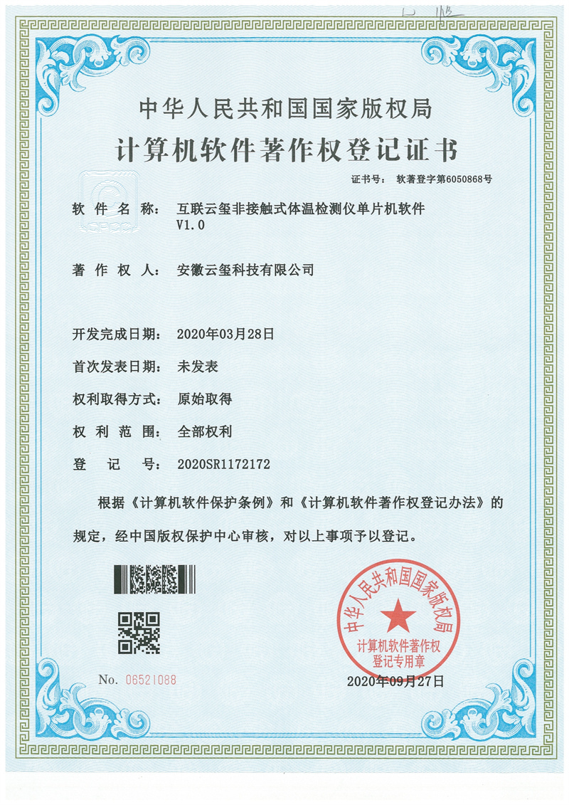 互聯(lián)云璽非接觸式體溫檢測(cè)儀單片機(jī)軟件V1.0