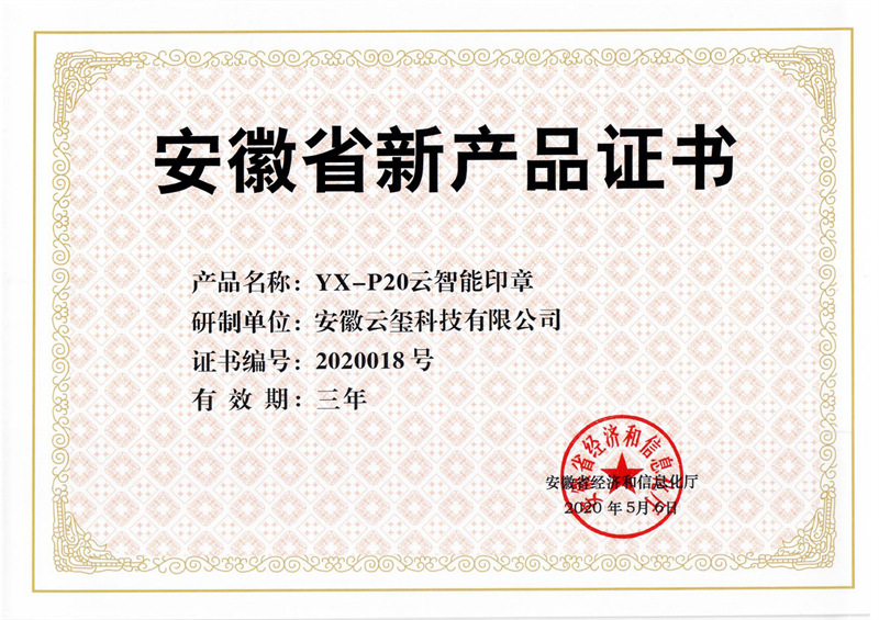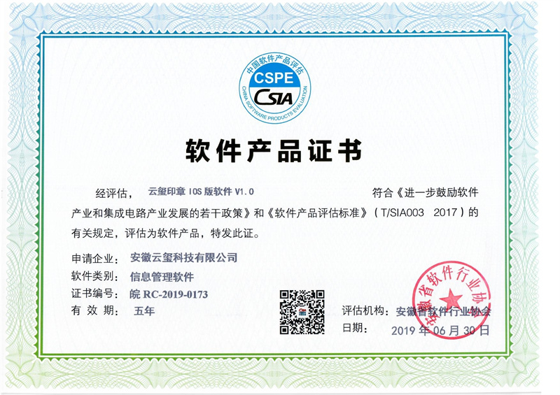 云璽印章IOS版軟件產(chǎn)品證書(shū)