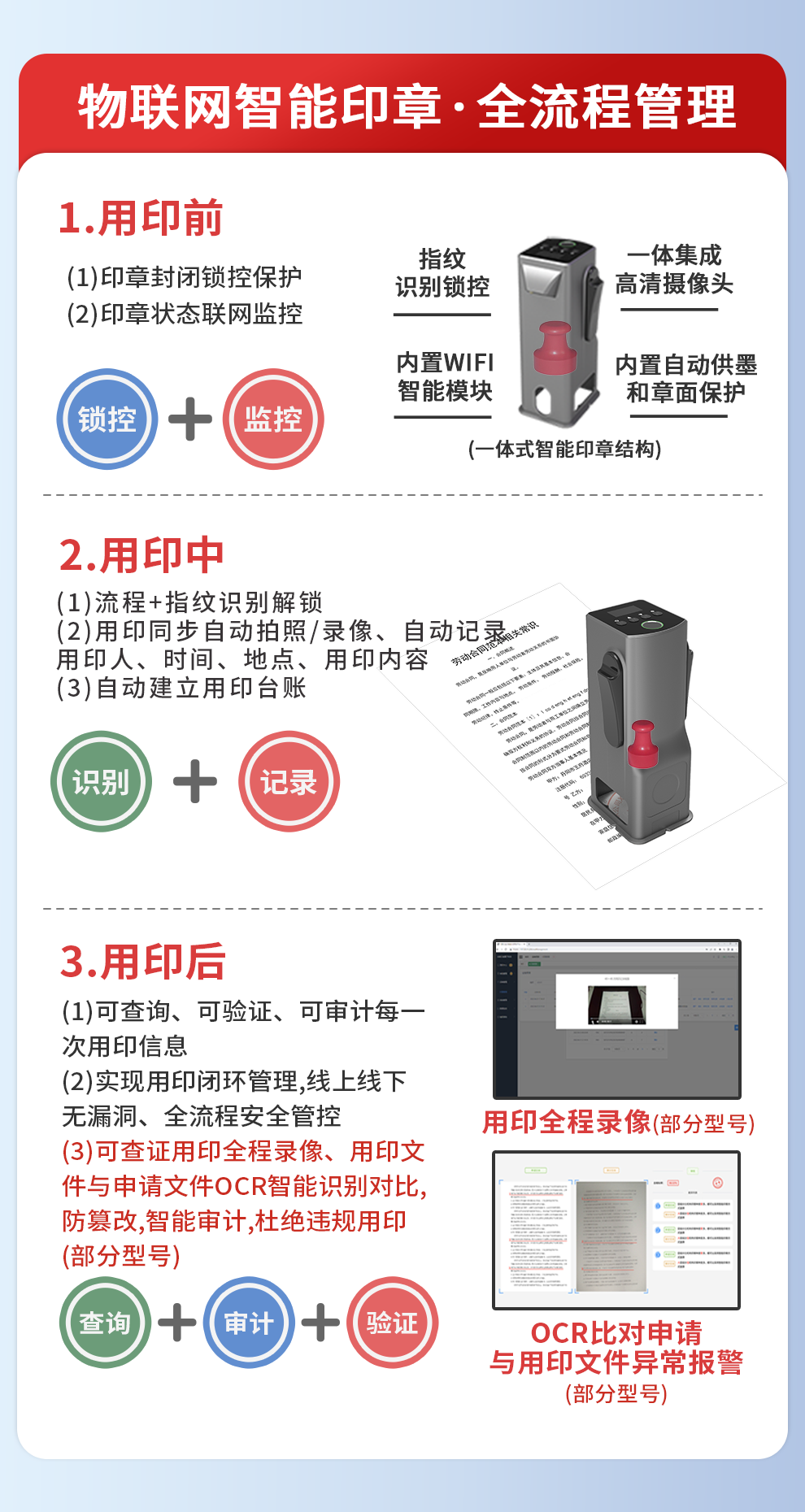 基礎(chǔ)印控+用印審批+蓋印自動拍照留痕,適合100人以內(nèi)標(biāo)準(zhǔn)印控需求企業(yè)